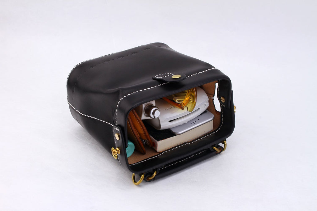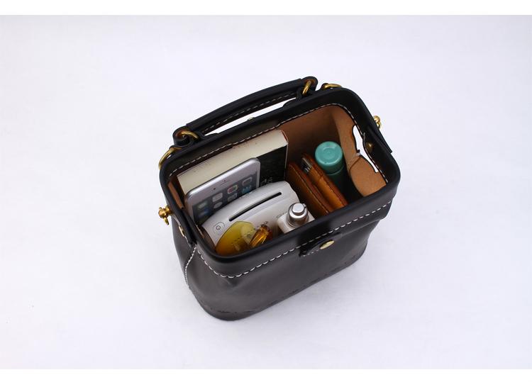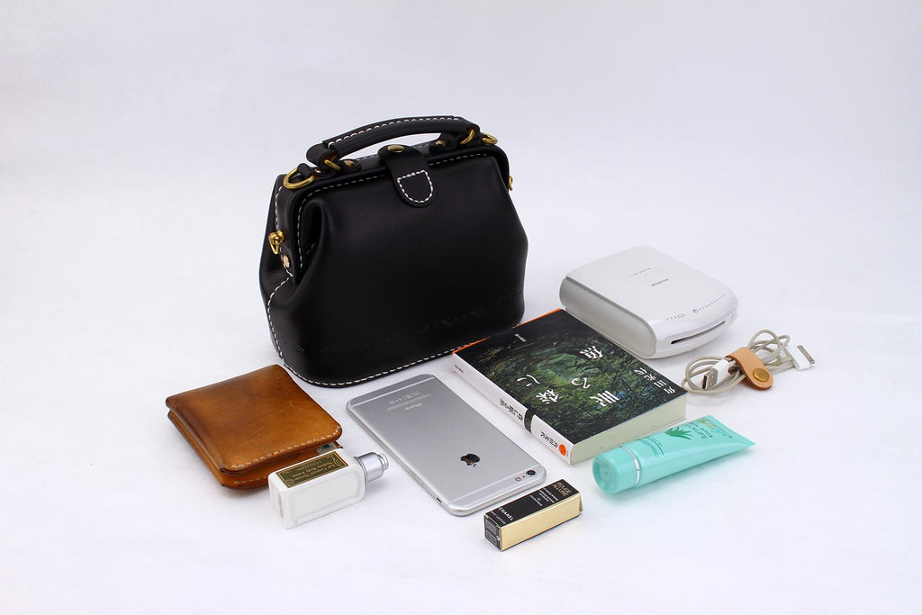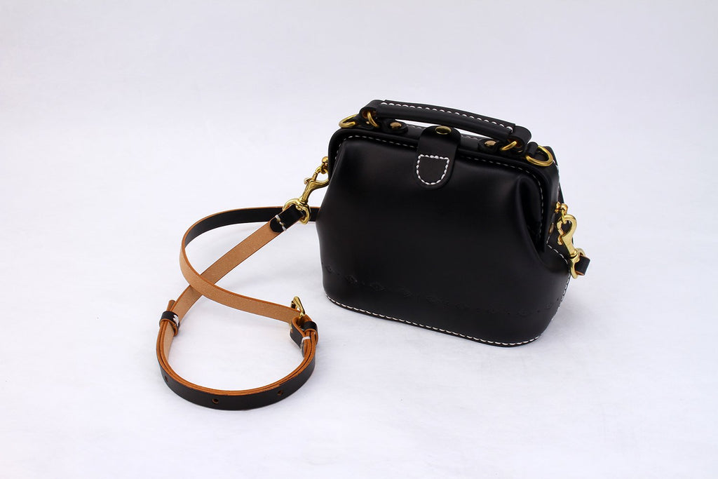 Style: Handmade Womens Black Leather Small doctor Handbag shoulder doctor bags for women