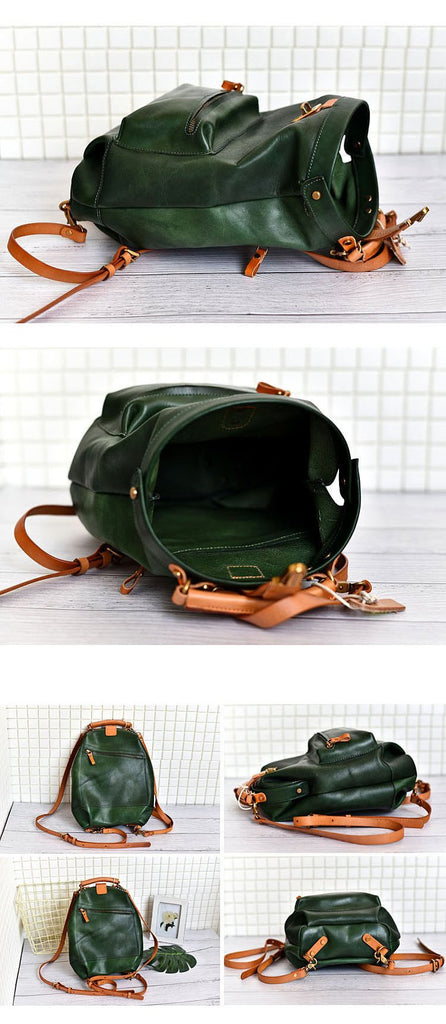 Design: Handmade Tan Leather Big Mouth Backpack Bag For Women