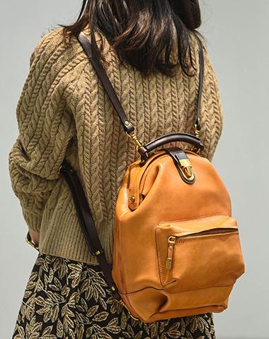 Style: Handmade Womens Tan Leather Doctor Backpack Purse Shoulder Doctor Handbags for Women