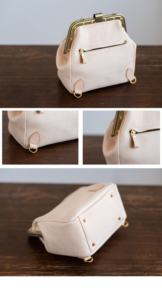 Handmade Womens White Leather Doctor Backpack Purse Shoulder Doctor Handbag for Women