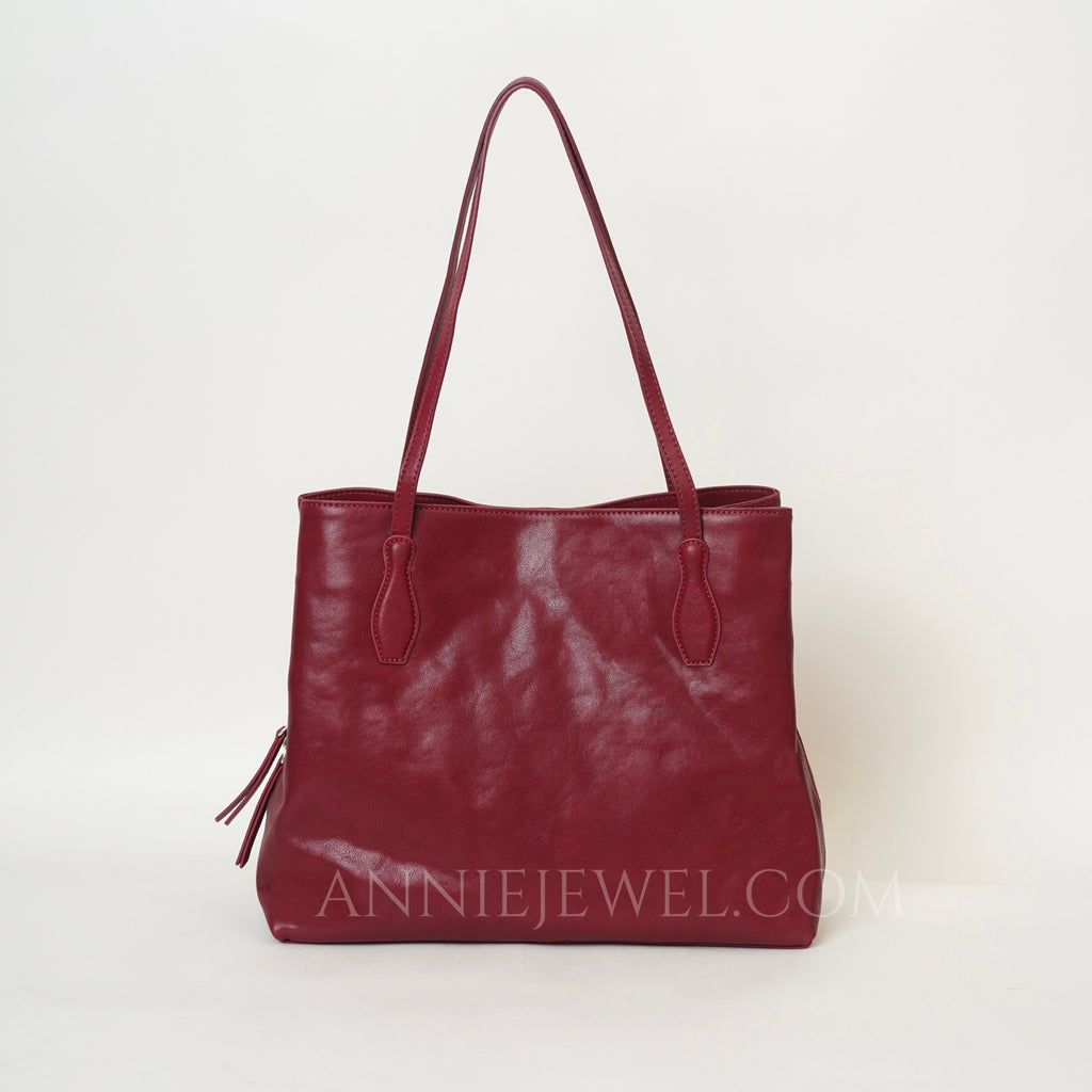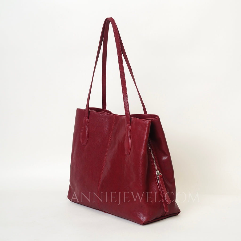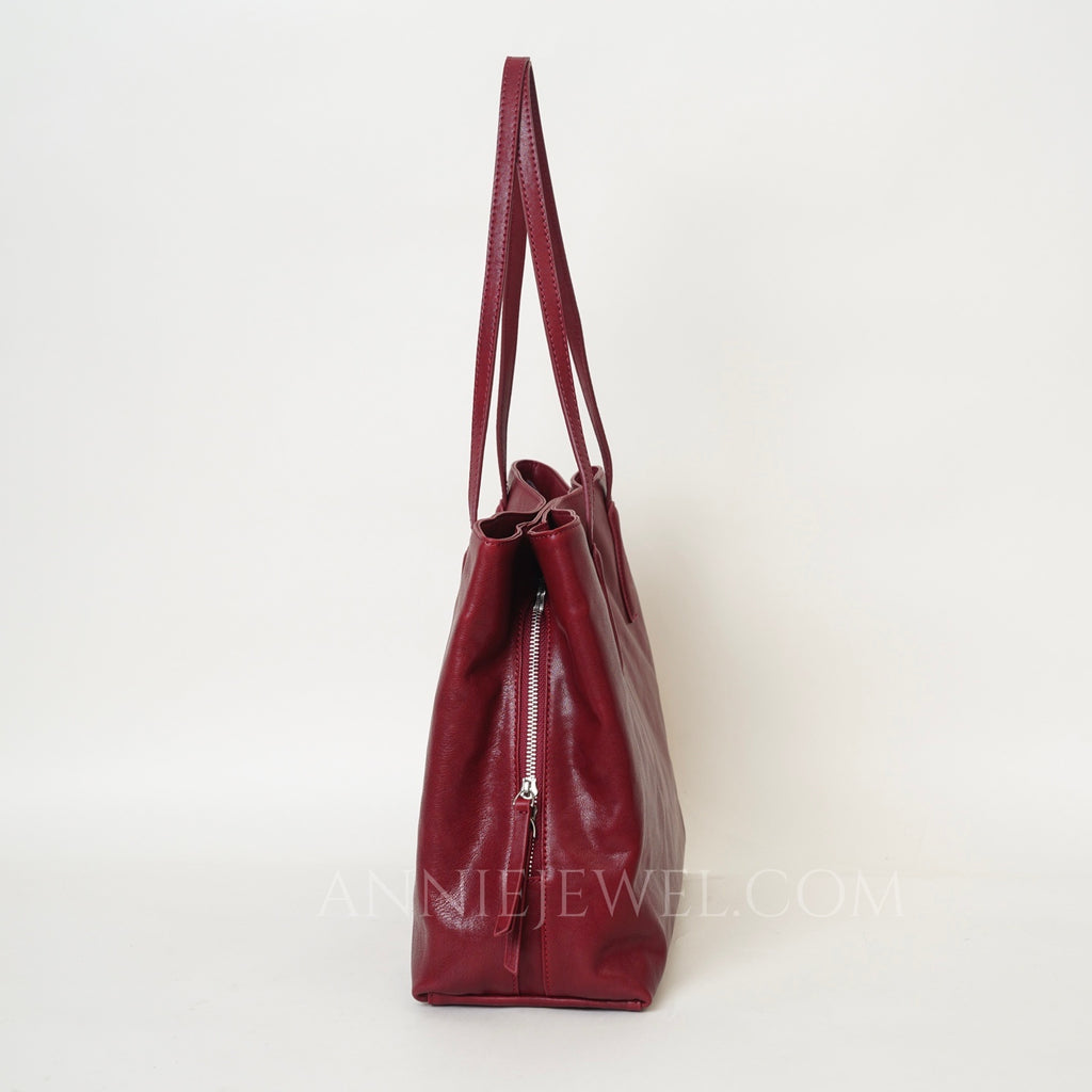 Burgundy Leather Tote Real Leather Tote Bag Genuine Leather Tote Bag With Zipper Womens