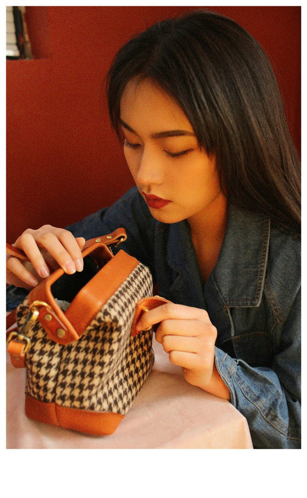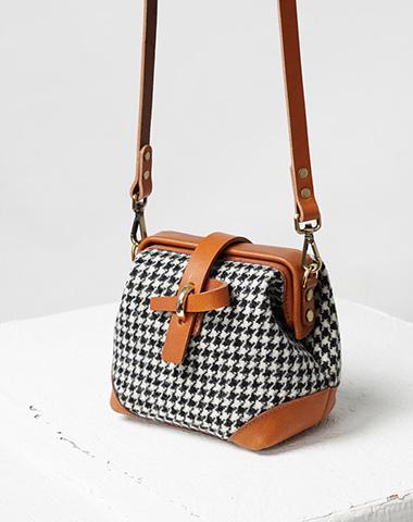 Style: Handmade Womens Leather Tweed Doctor Handbag Small Side Purses Doctor Purse for Women