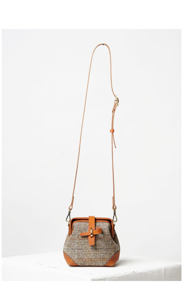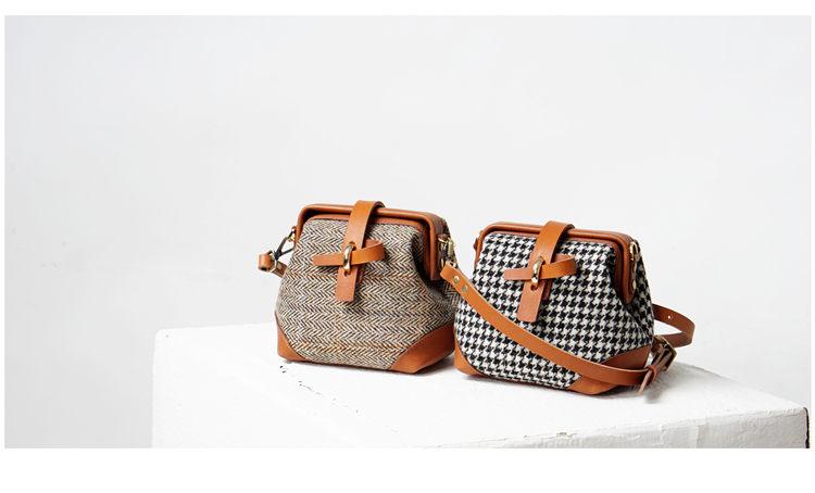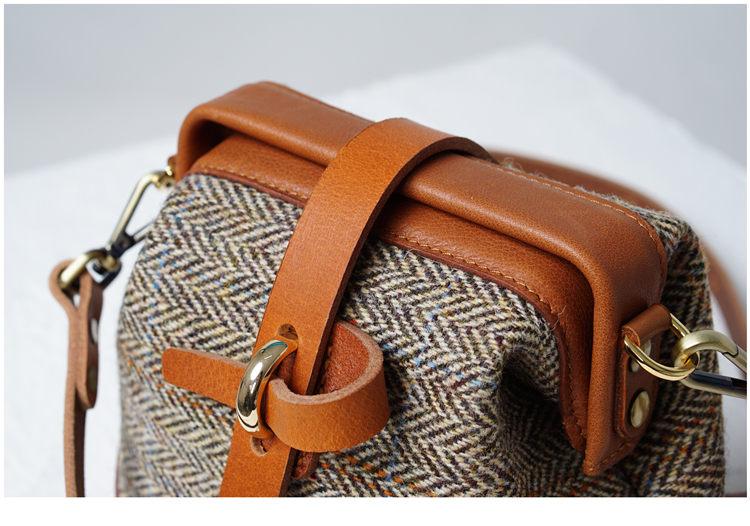 Design: Handmade Womens Leather Tweed Doctor Handbag Small Side Purses Doctor Purse for Women