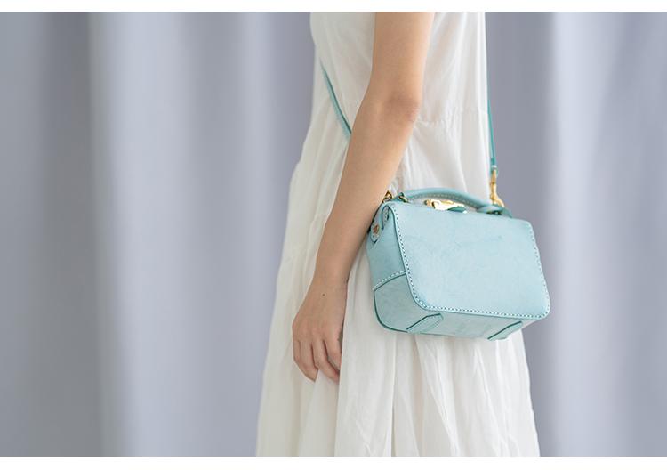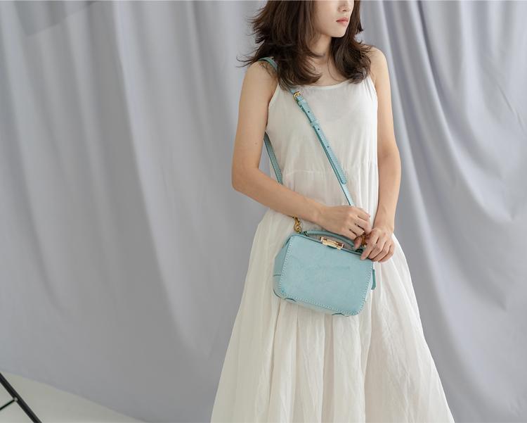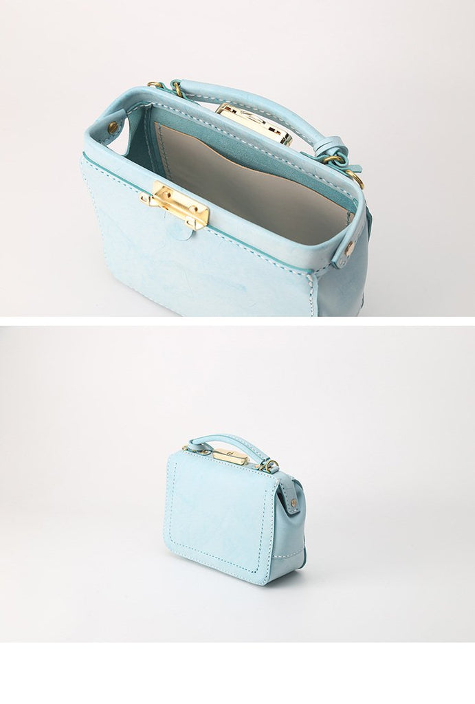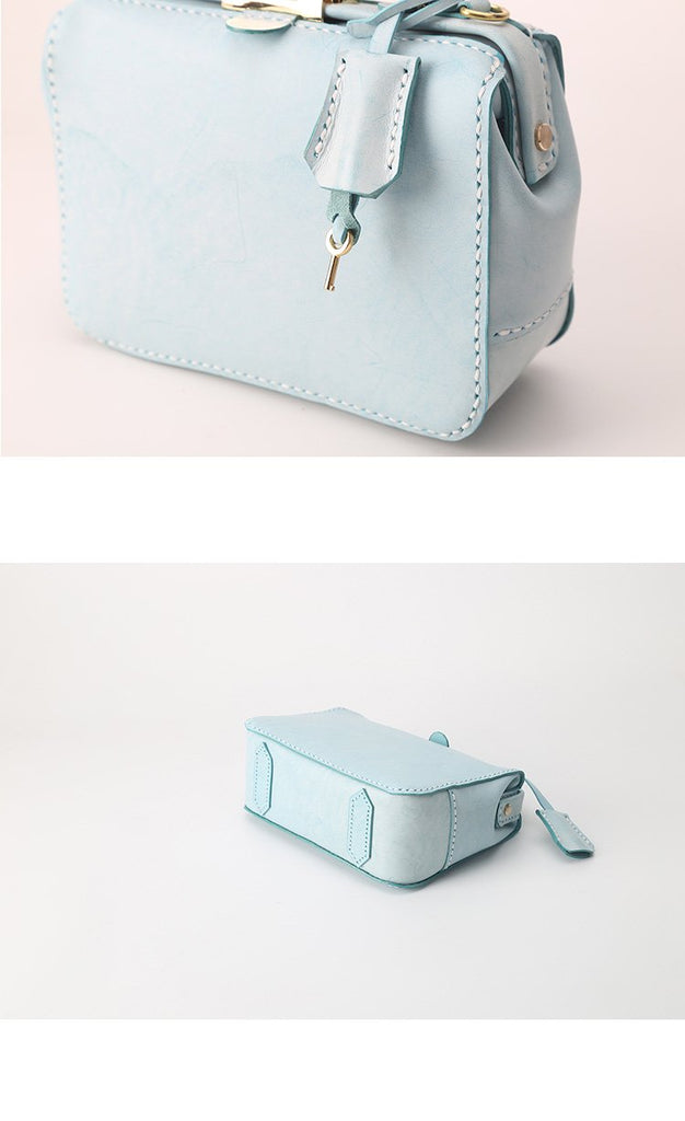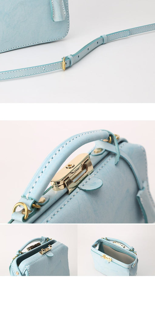 Style: Handmade Womens Blue Leather Doctor Handbag Purse Small Side Bag Doctor Purse for Women
