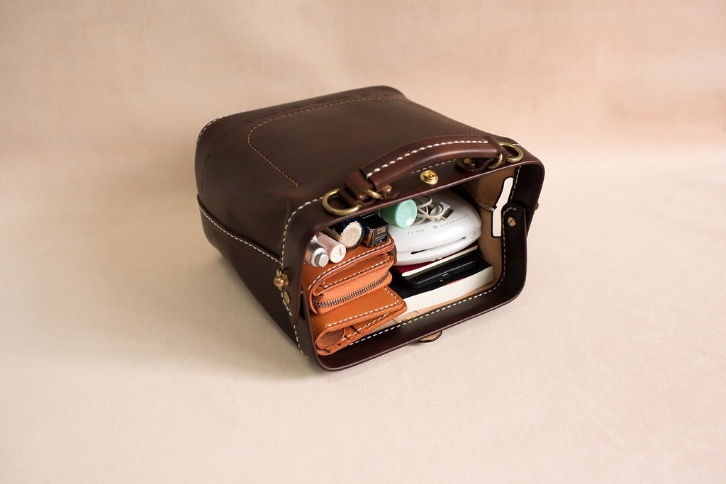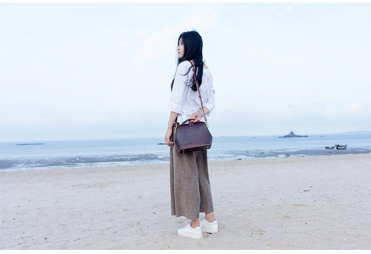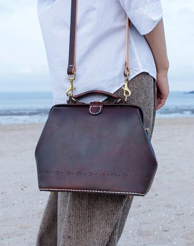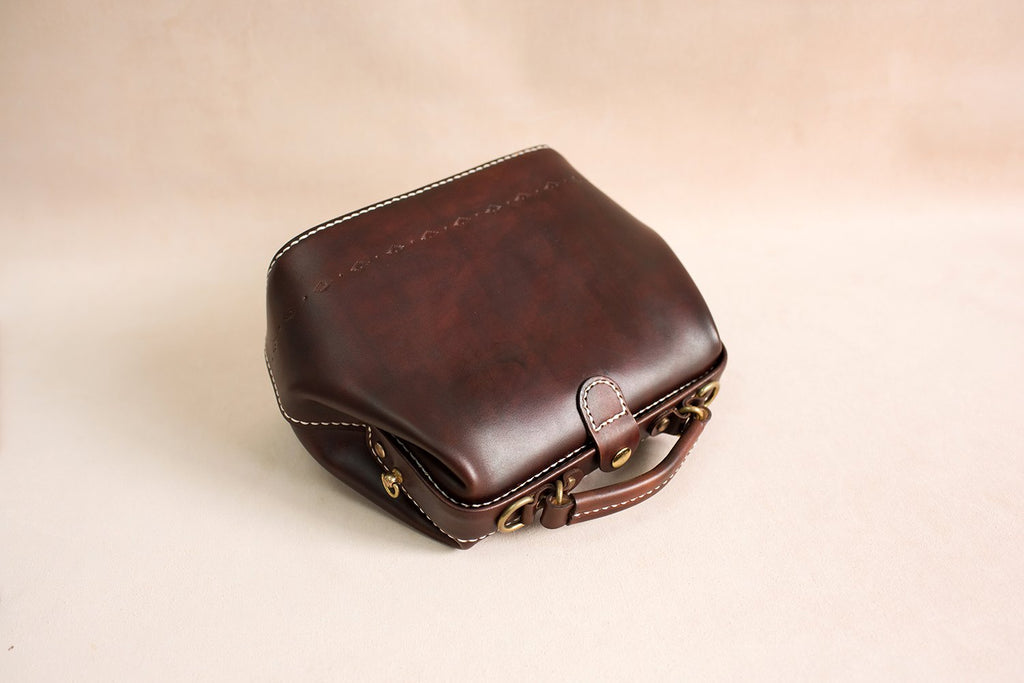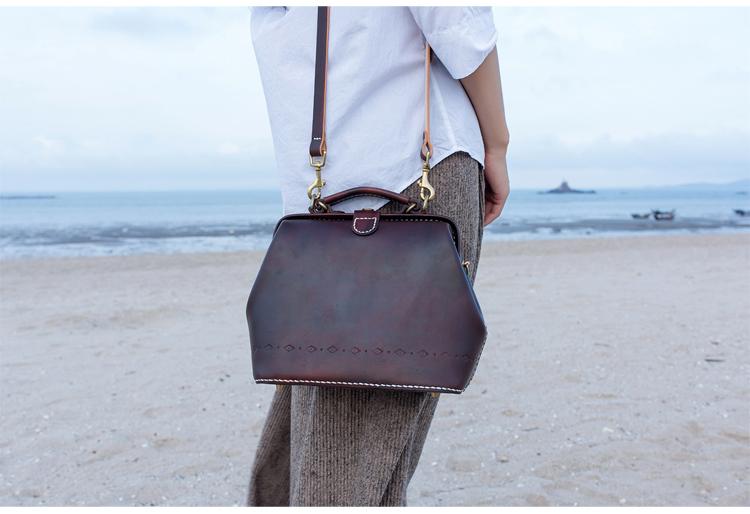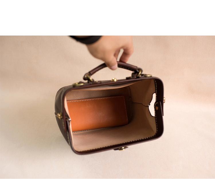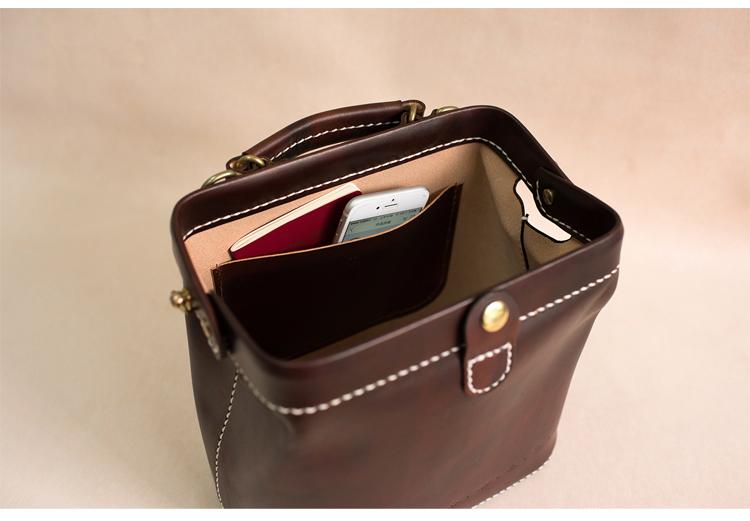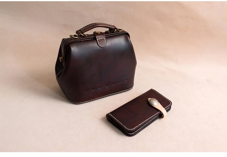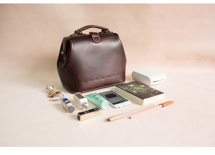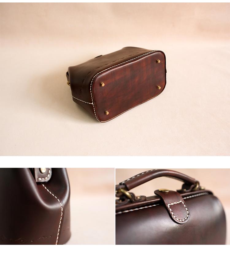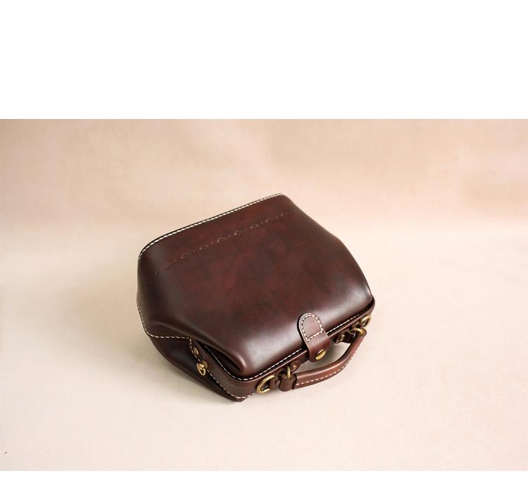 Style:Handmade Womens Coffee Leather doctor Handbag shoulder doctor bags Purse for women