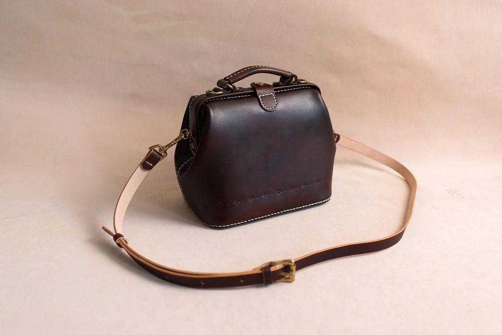 Handmade Womens Coffee Leather doctor Handbag shoulder doctor bags Purse for women