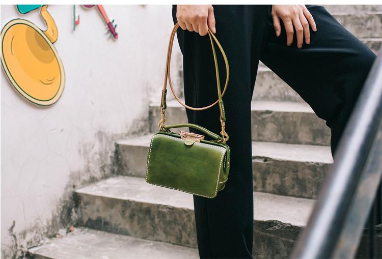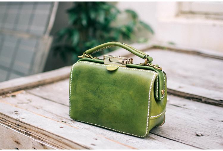 Handmade Womens Green Leather Doctor Handbag Purse Small Side Bag Doctor Bags for Women