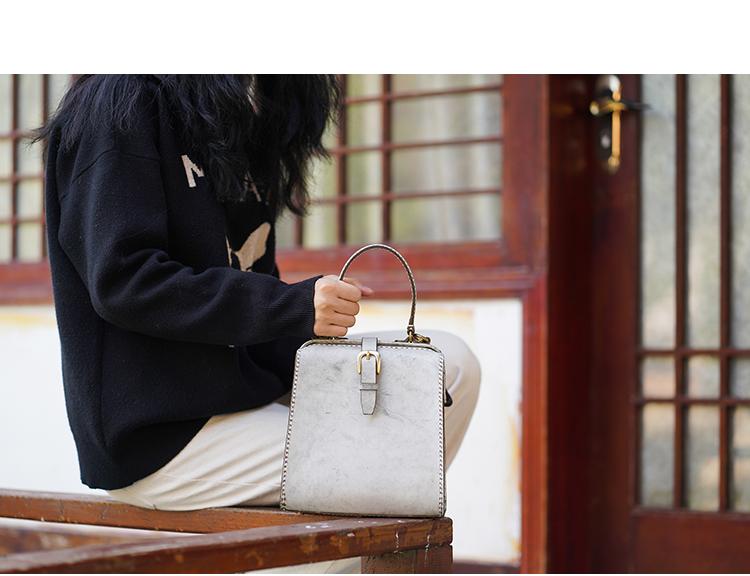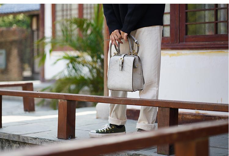 Style: Handmade Womens Green Leather Doctor Handbag Purse Small Side Bag Doctor Purse for Women