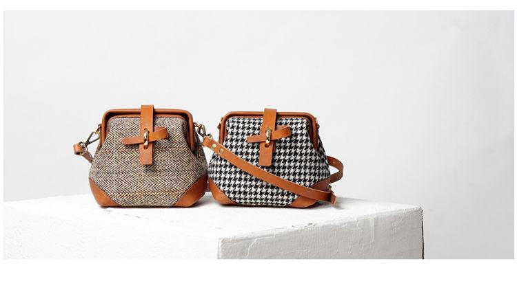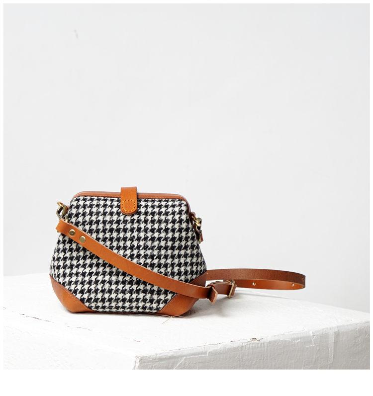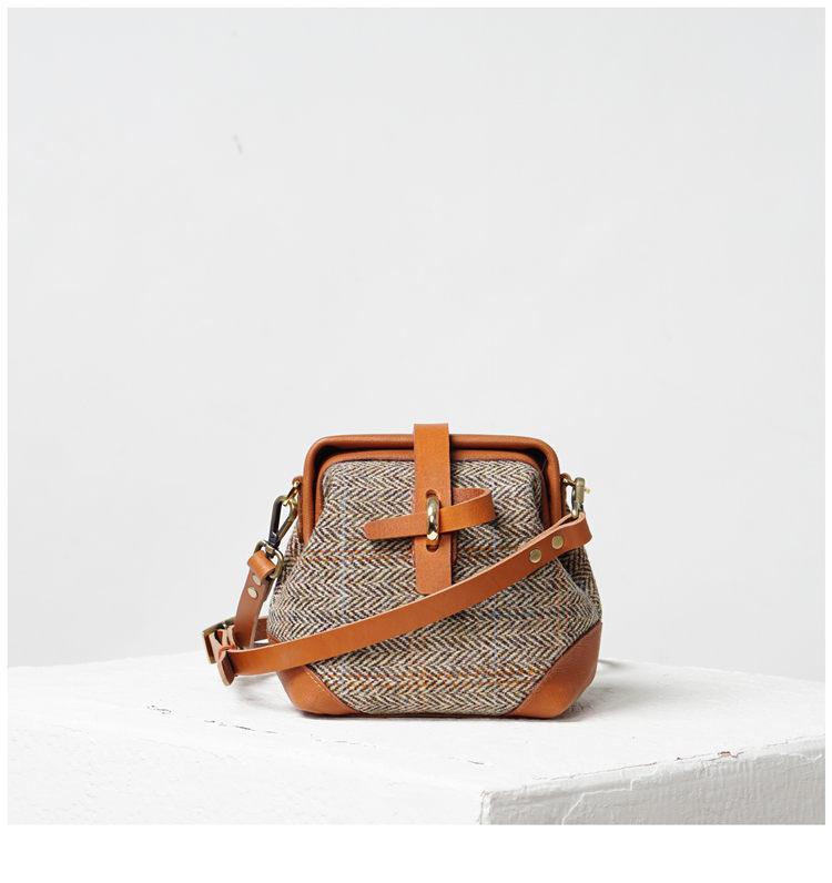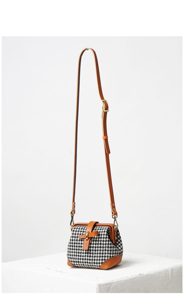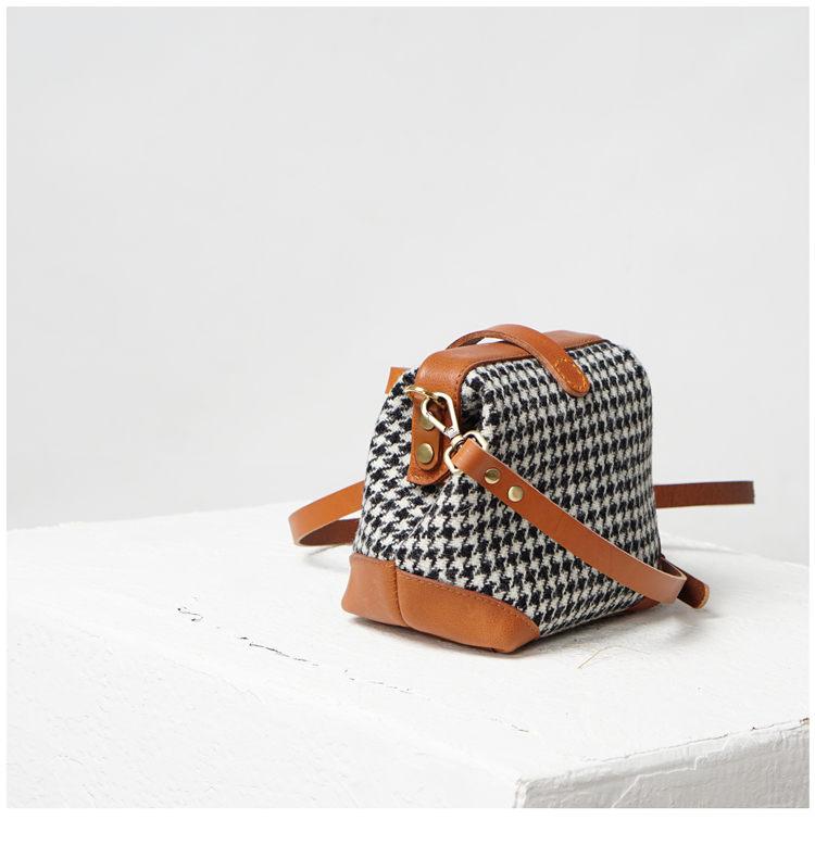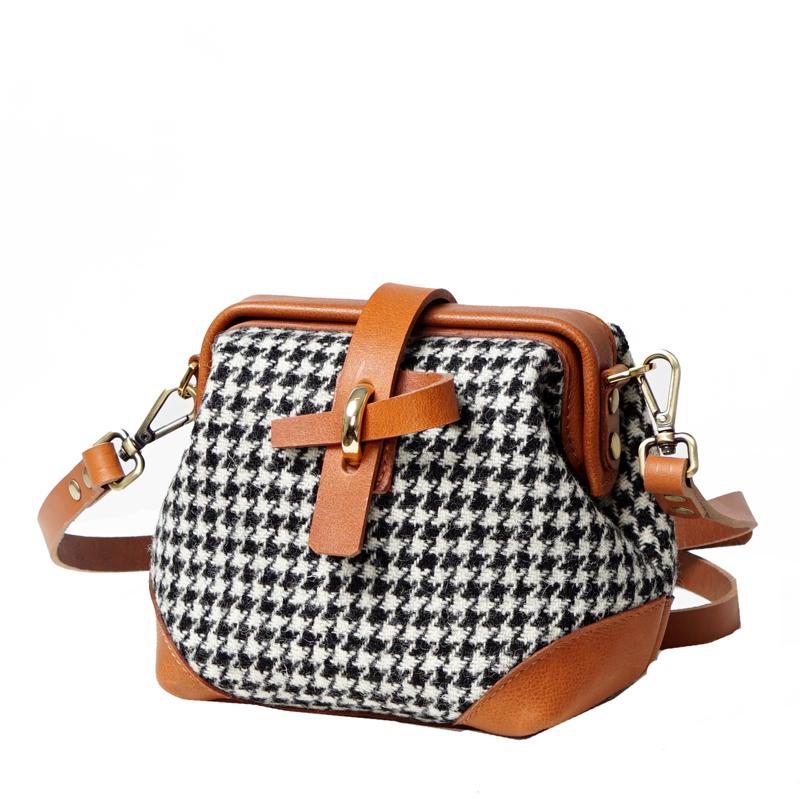 Design: Handmade Womens Leather Tweed Doctor Handbag Small Side Purses Doctor Purse for Women