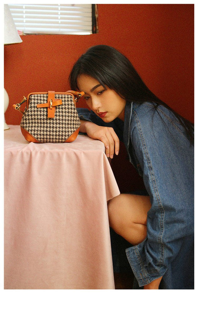 Style: Handmade Womens Leather Tweed Doctor Handbag Small Side Purses Doctor Purse for Women