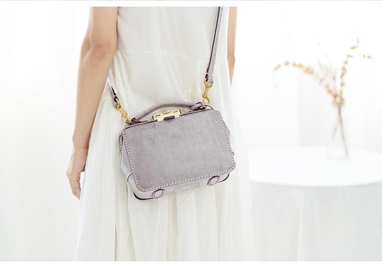 Style: Handmade Womens Purple Leather Doctor Handbag Purse Small Side Bag Doctor Purse for Women