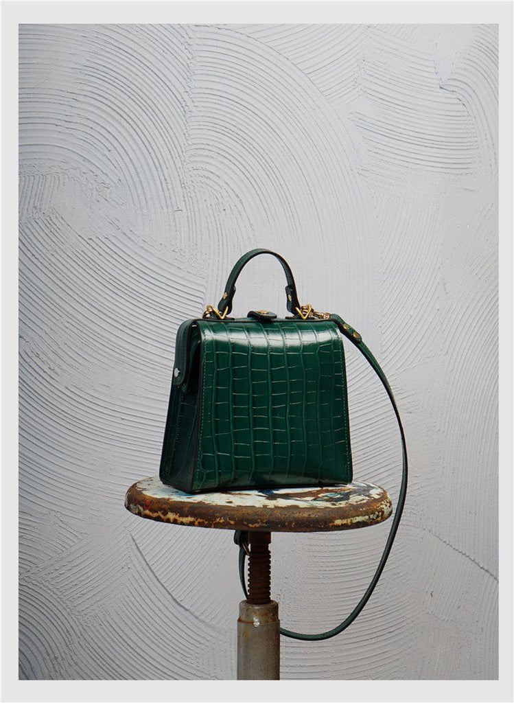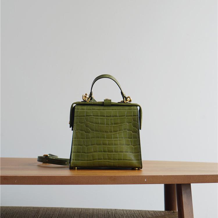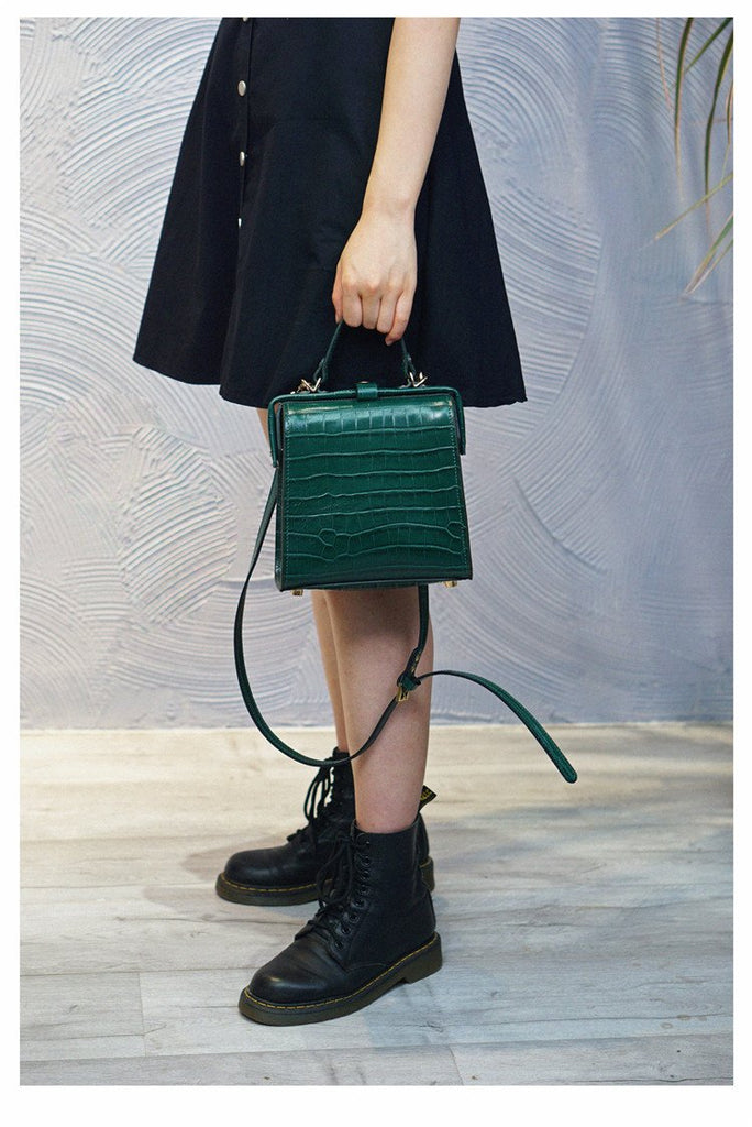 Handmade Womens Stylish Square Dark Green Leather Doctor Handbag Side Purse Doctor Purse for Women