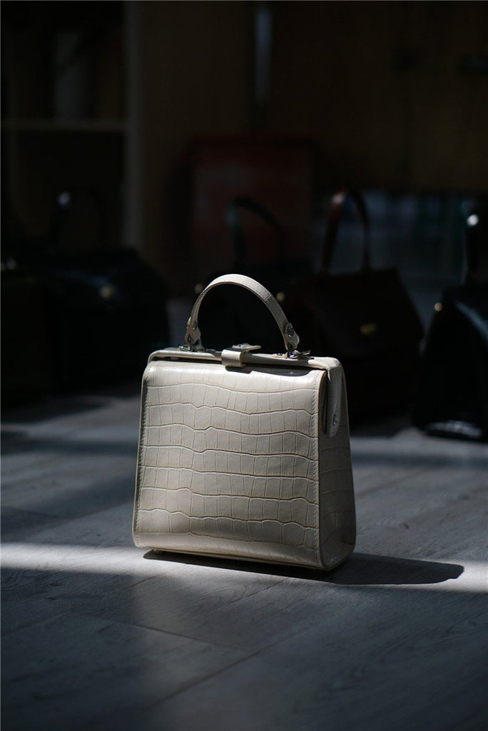 Design: Handmade Womens Stylish Square White Leather Doctor Handbag Side Purse Doctor Purse for Women