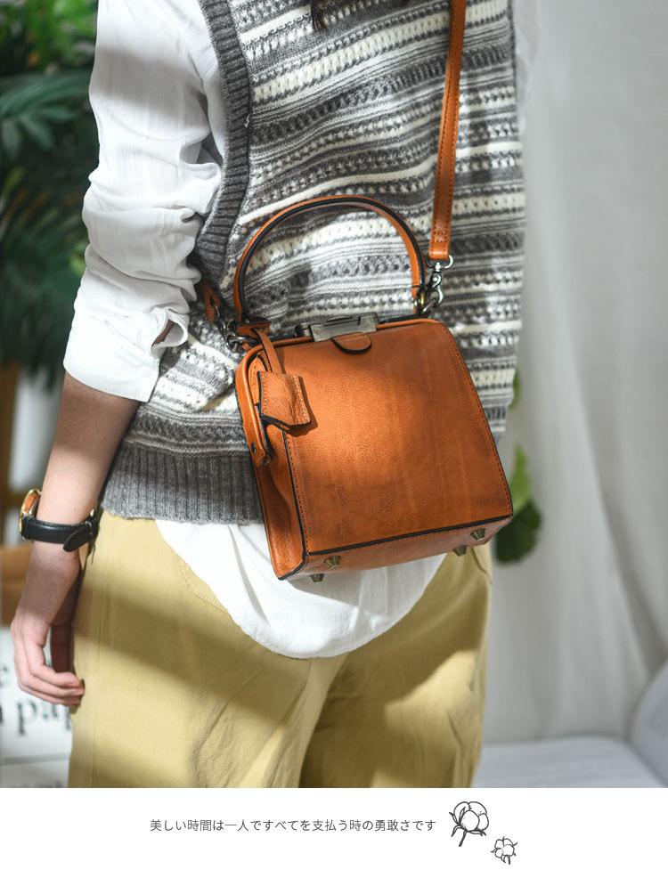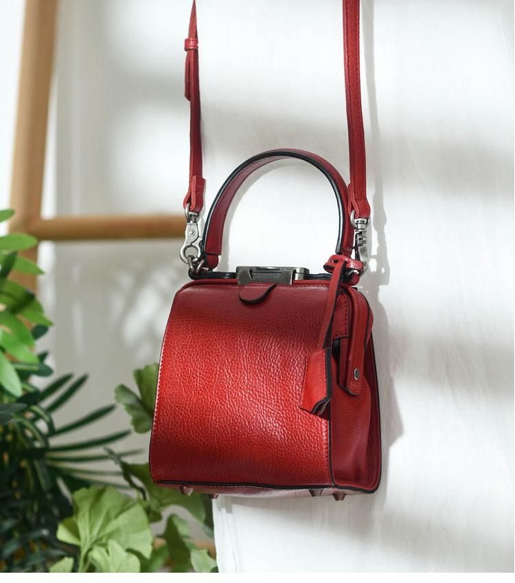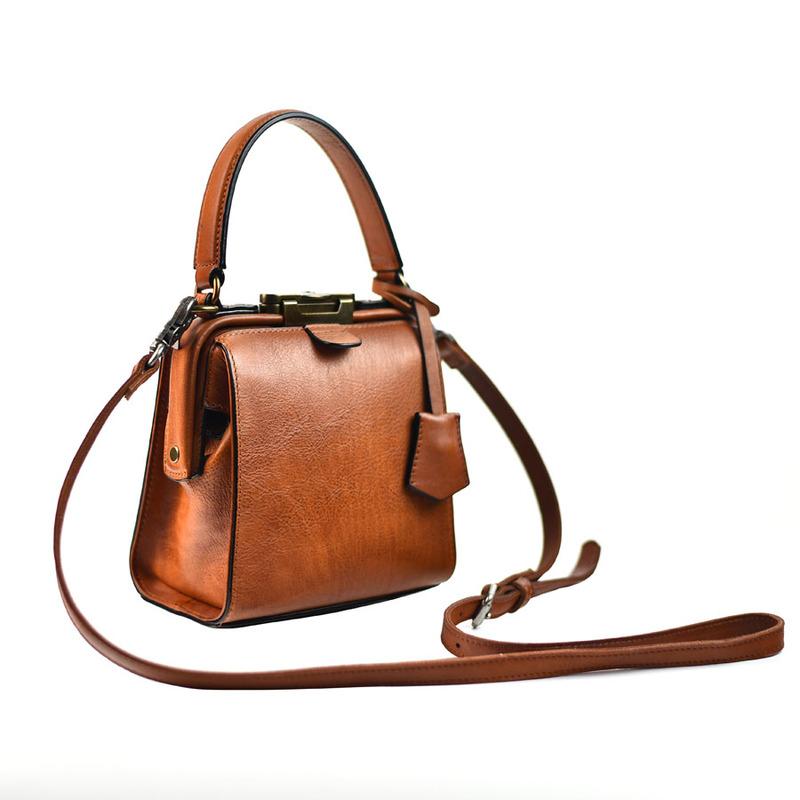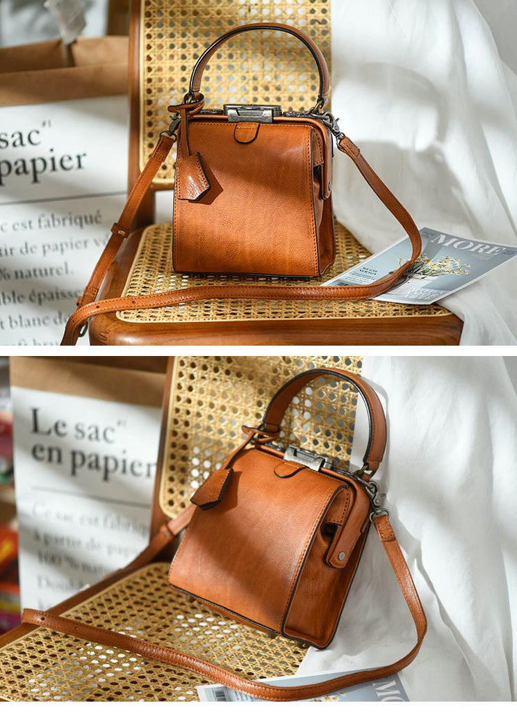 Design: Womens Brown Leather Doctor Handbag Purses Square Doctor Crossbody Purse for Women