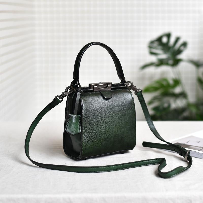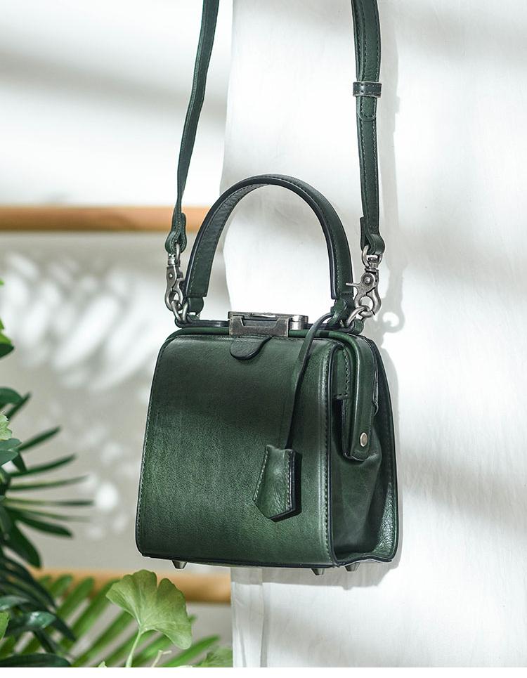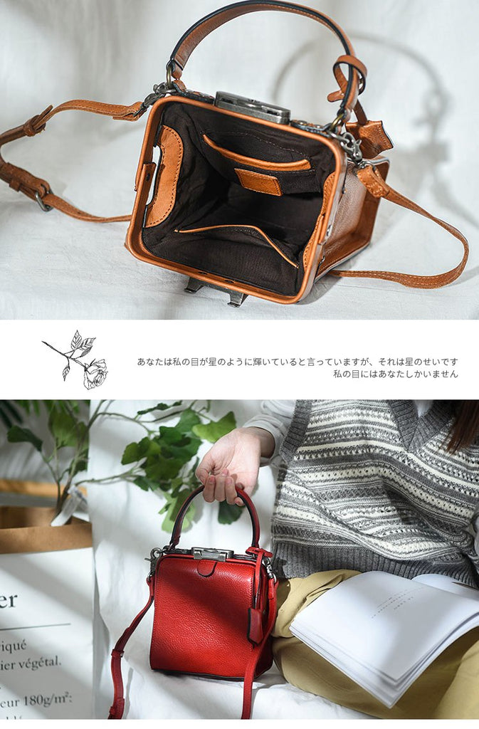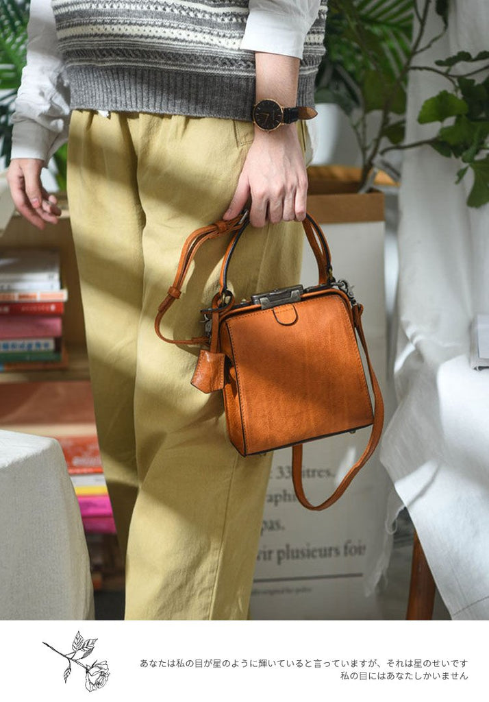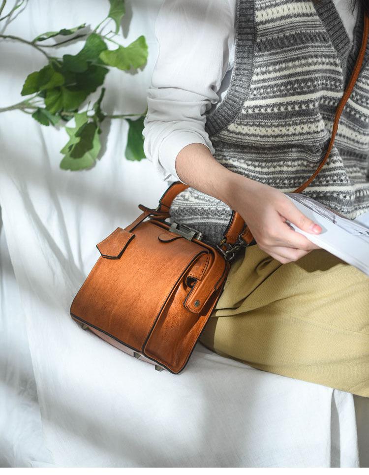 Style: Womens Coffee Leather Doctor Handbag Purses Square Doctor Crossbody Purse for Women