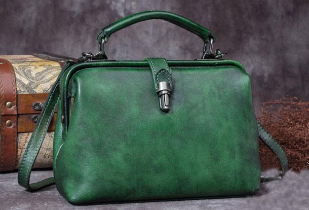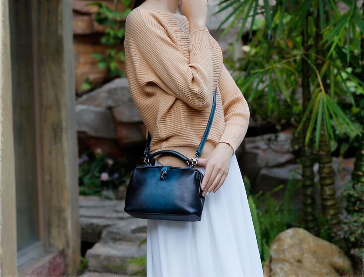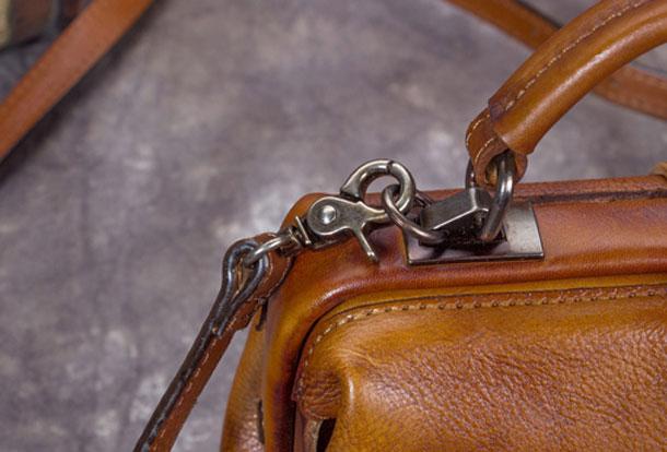 Design: Handmade Coffee&Tan Leather Handbag Vintage Doctor Bag Shoulder Bag Purse For Women