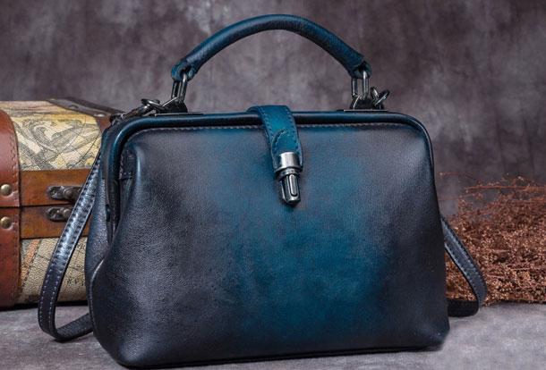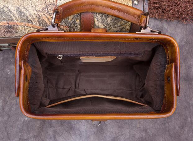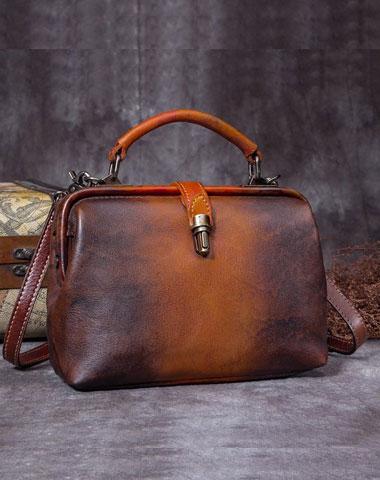 Style: Handmade Coffee&Tan Leather Handbag Vintage Doctor Bag Shoulder Bag Purse For Women