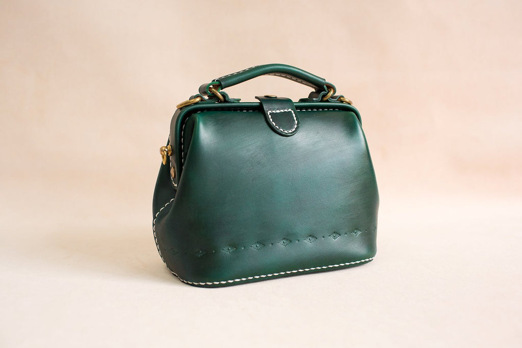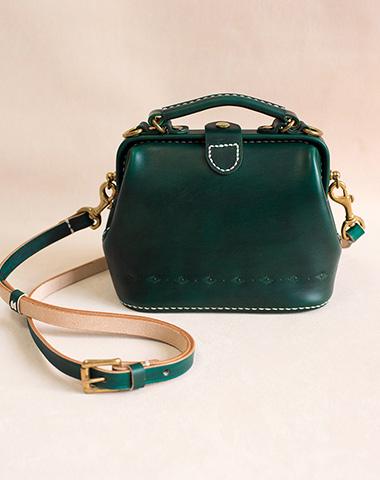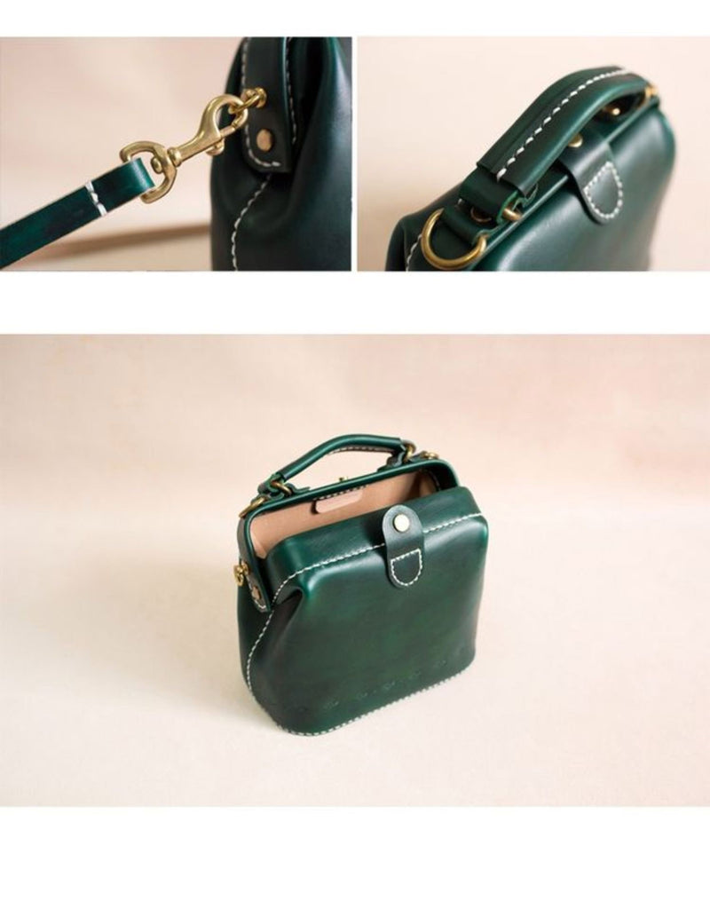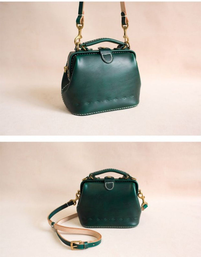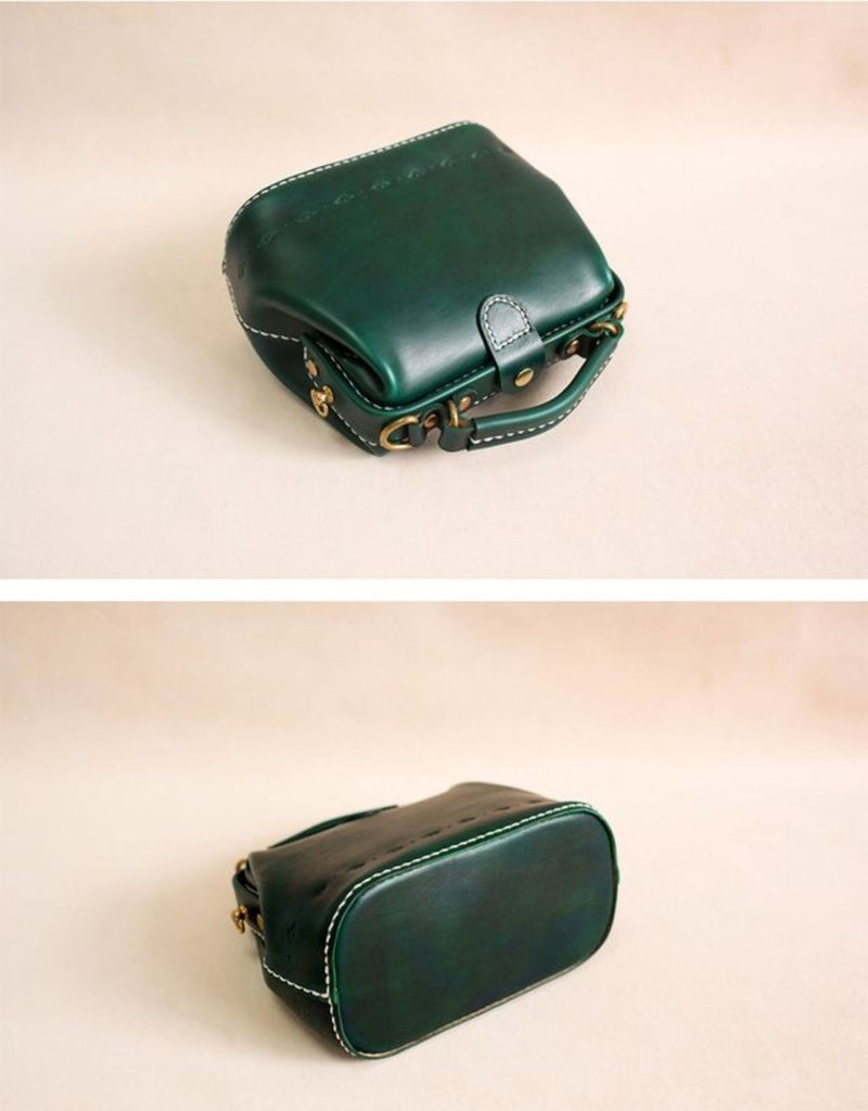 Style: Handmade Womens Green Leather Mini doctor Handbag shoulder doctor bags for women