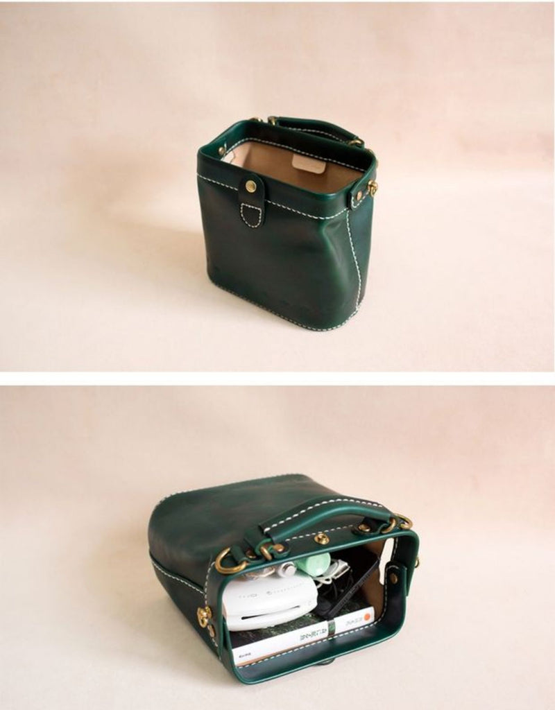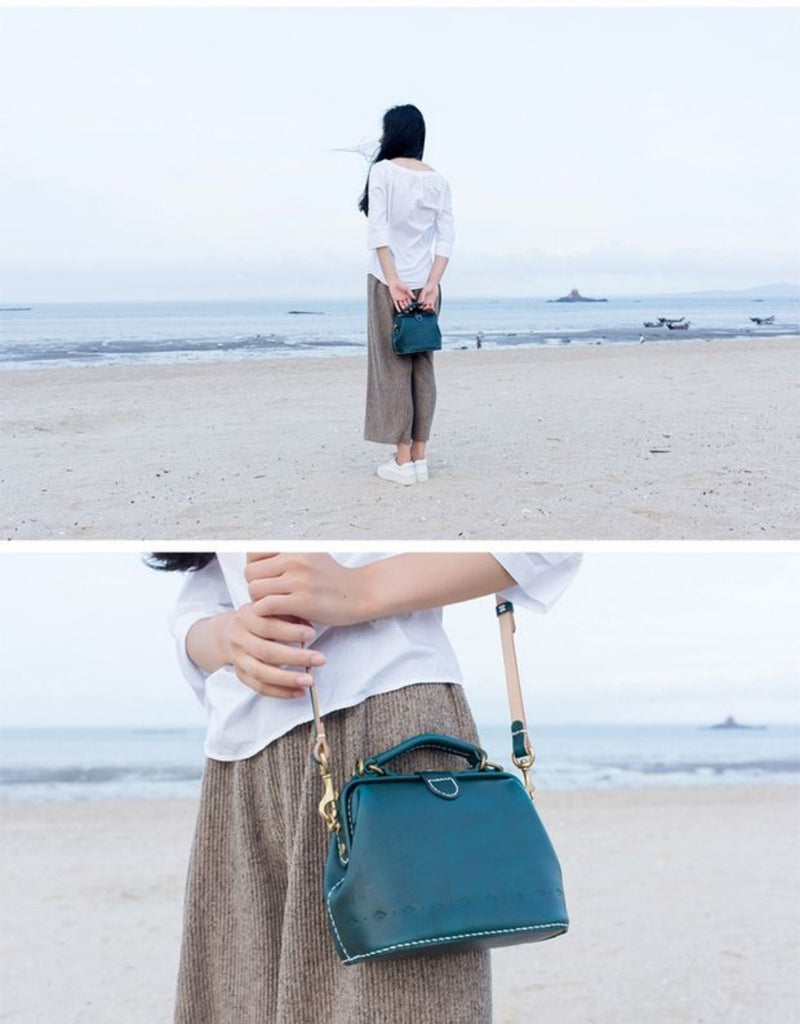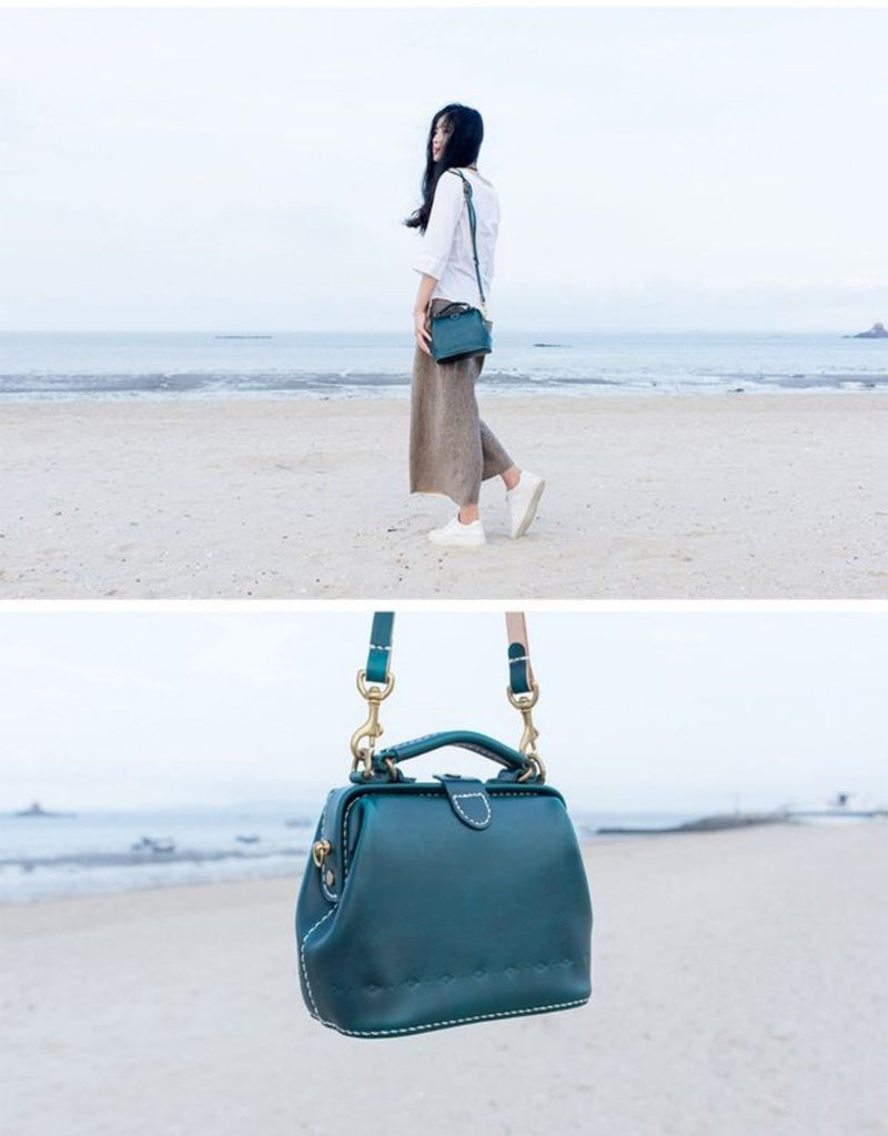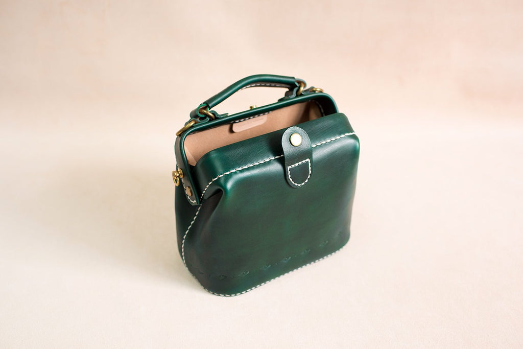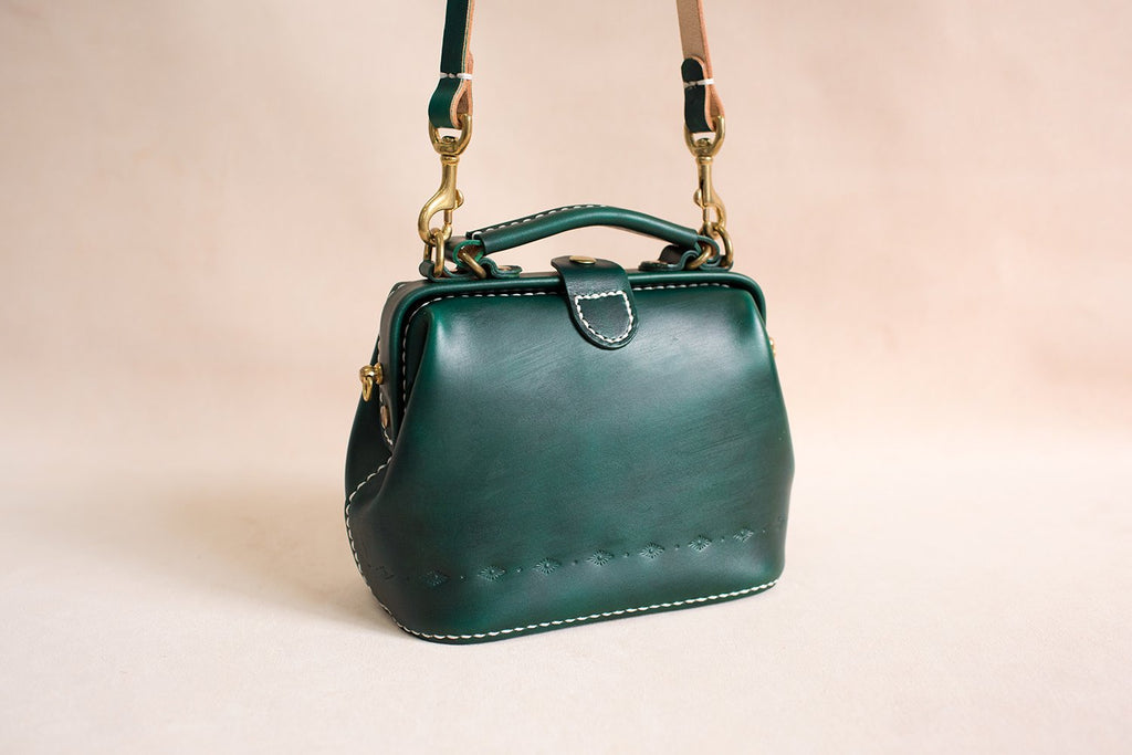 Style: Handmade Womens Green Leather Mini doctor Handbag shoulder doctor bags for women