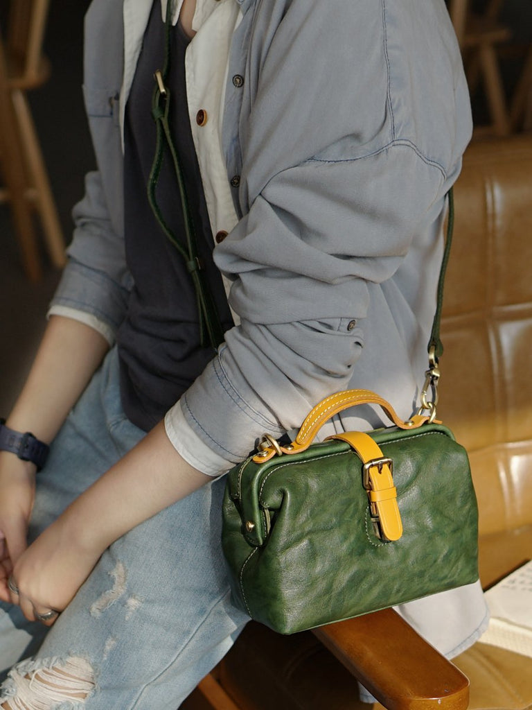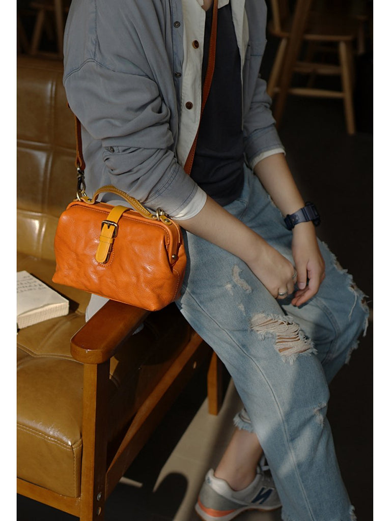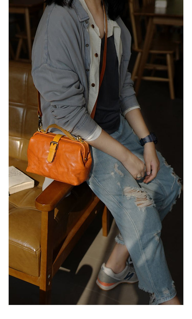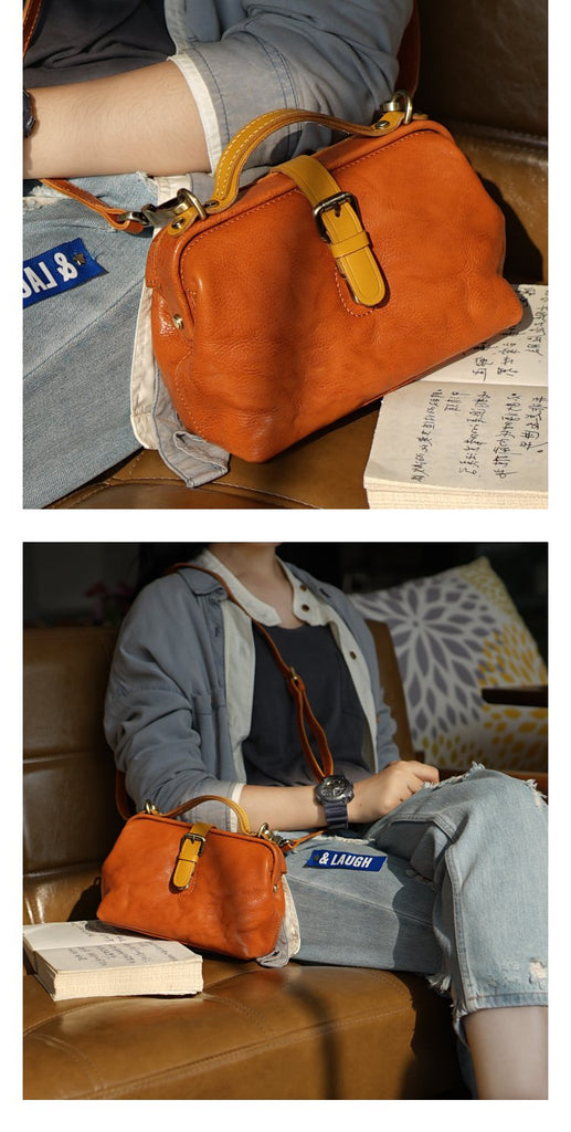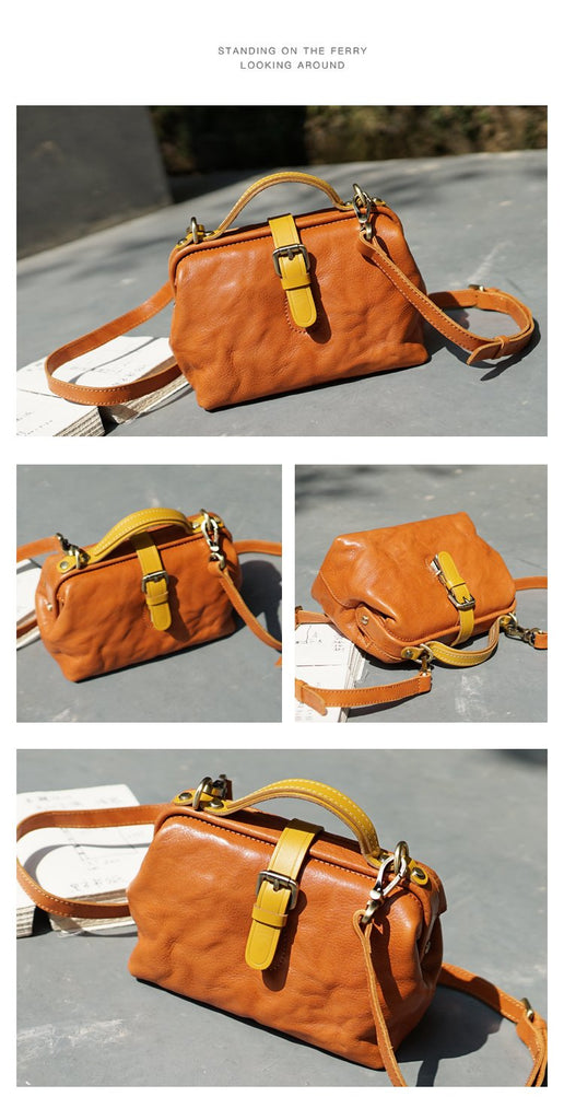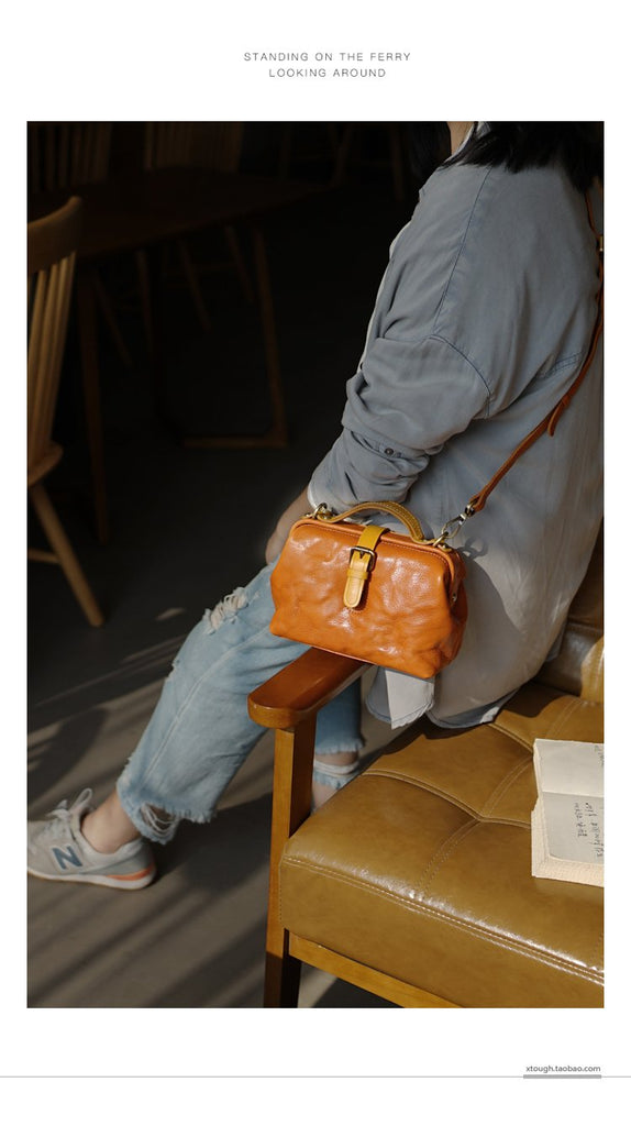 Style: Vintage Womens Tan Leather Doctor Handbags Side Purses Doctor Purses for Women