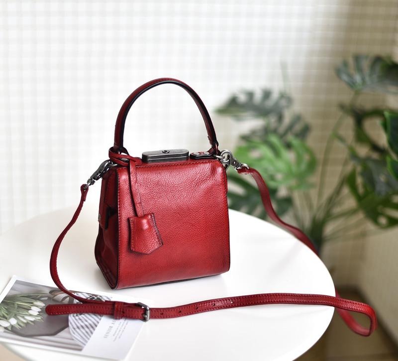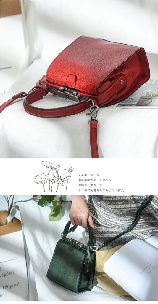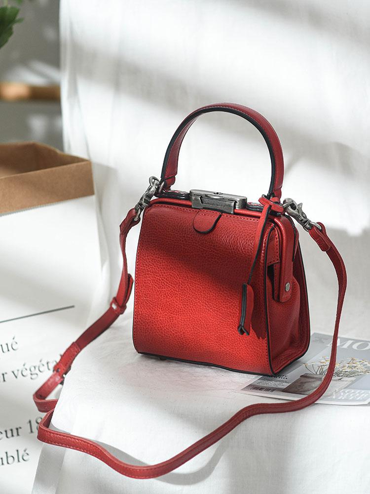 Design: Womens Red Leather Doctor Handbag Purses Square Doctor Crossbody Purse for Women