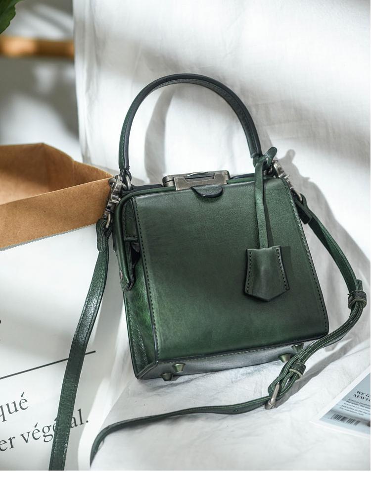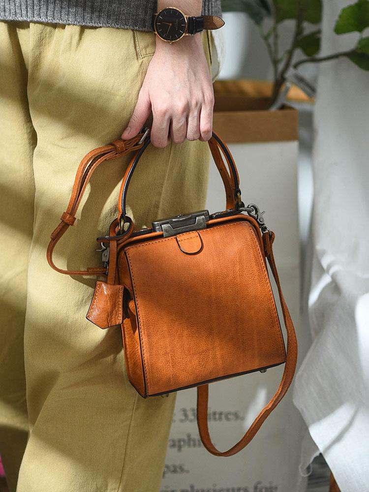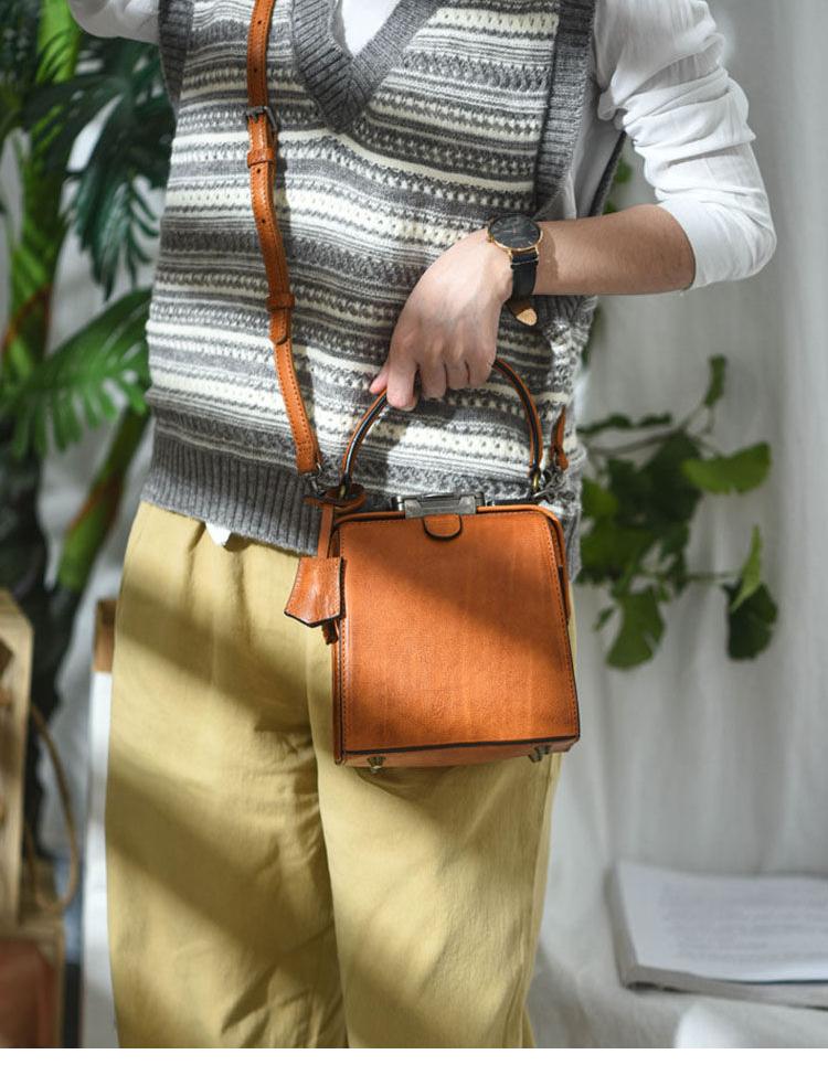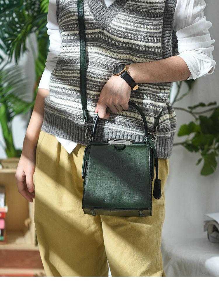 Style: Womens Red Leather Doctor Handbag Purses Square Doctor Crossbody Purse for Women